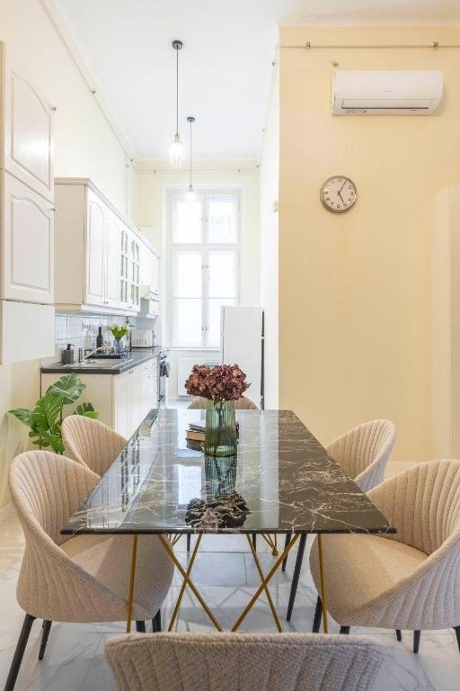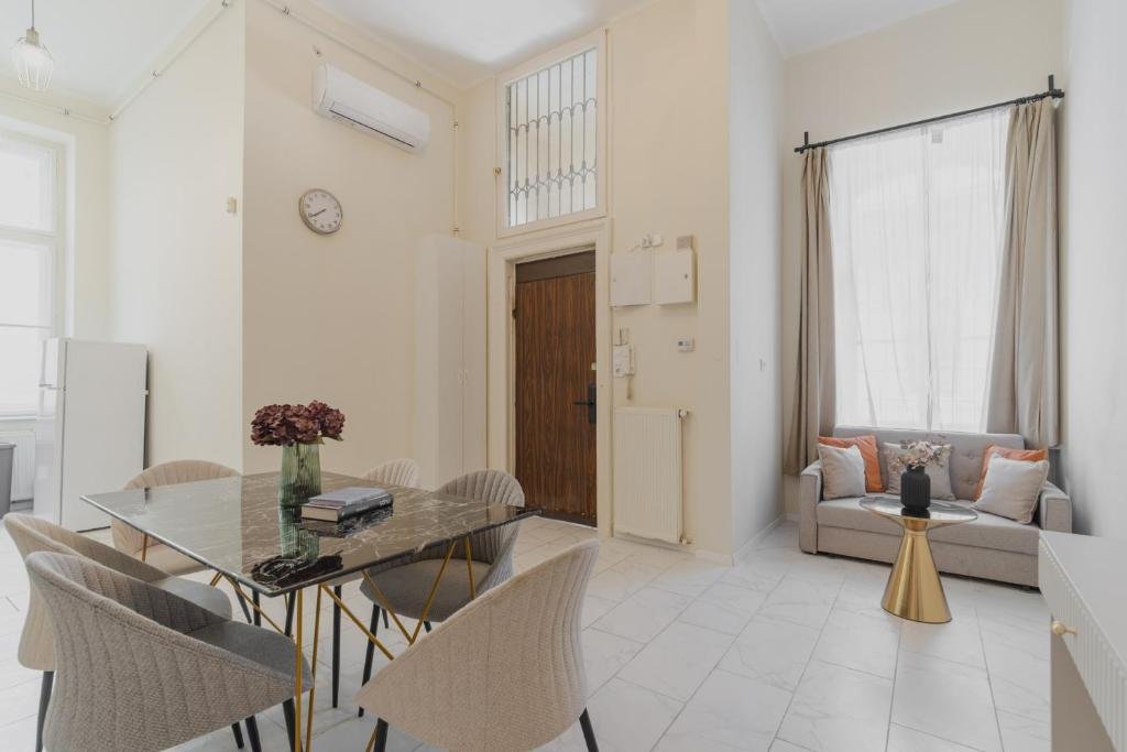 Situated just steps away from Nyugati Station (M3 metro, tram 4–6, airport connections), the location guarantees exceptional connectivity. Daily errands and leisure are effortless with WestEnd Mall, Andrássy Avenue, Liszt Ferenc Square, and major cultural sights like the Opera, Basilica, and Parliament all within a short walk.