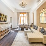 The apartment overlooks an inner courtyard, providing a quieter living environment despite its central location. Its layout and features make it suitable for 3–5 tenants seeking a spacious home in central Budapest.