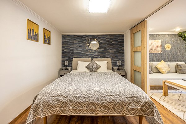 The property features a separate living room, three bedrooms with queen-size beds, and two bathrooms, ensuring both comfort and privacy. The apartment is fully furnished and equipped, offering everything needed for immediate move-in.