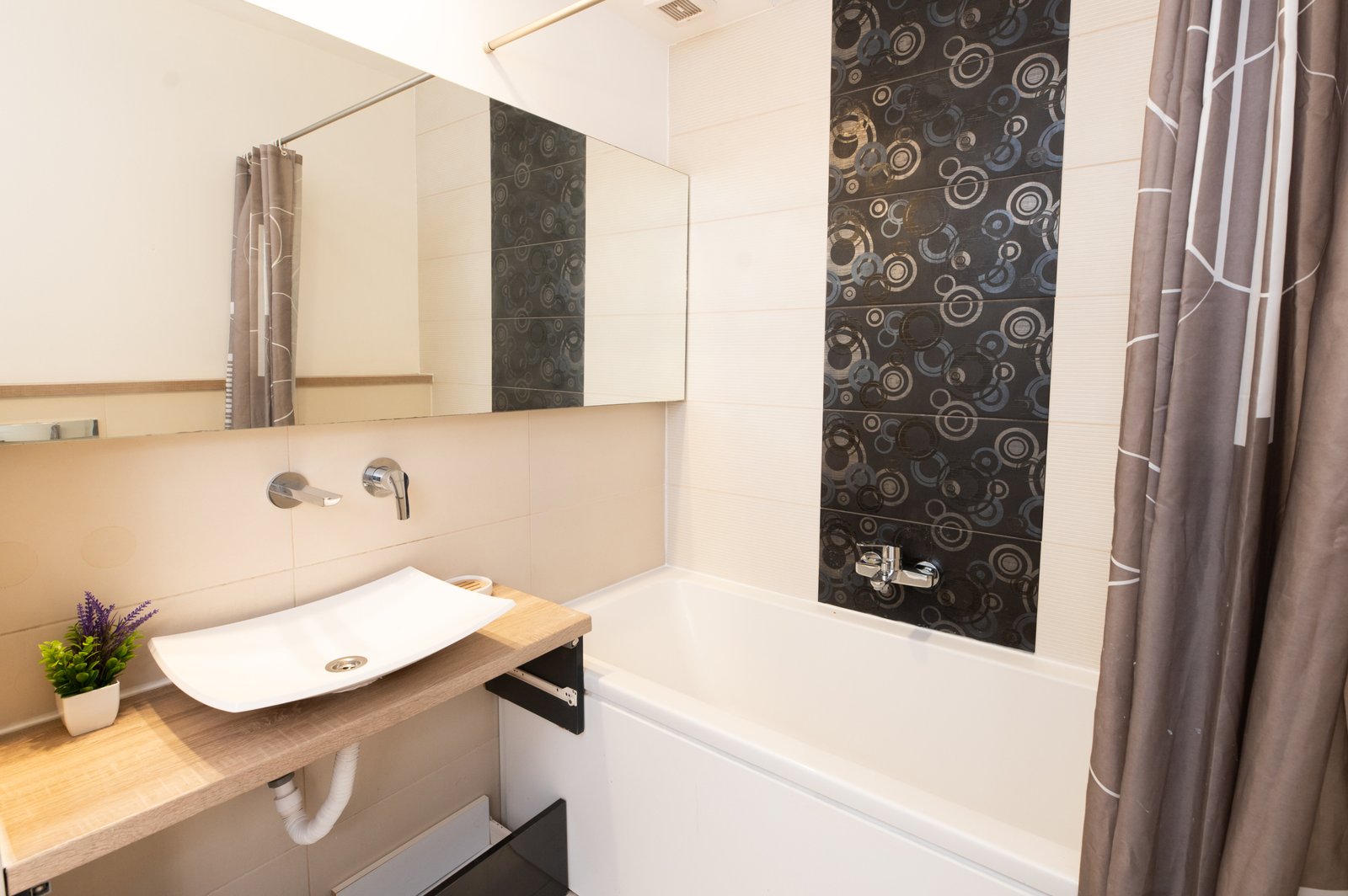 The apartment comes fully equipped with essential amenities, including a TV, AC, oven, and dishwasher, creating a functional and inviting living space. Natural light fills the rooms, enhancing the welcoming atmosphere. Utilities are billed based on actual consumption, giving tenants flexibility to manage monthly costs easily.
