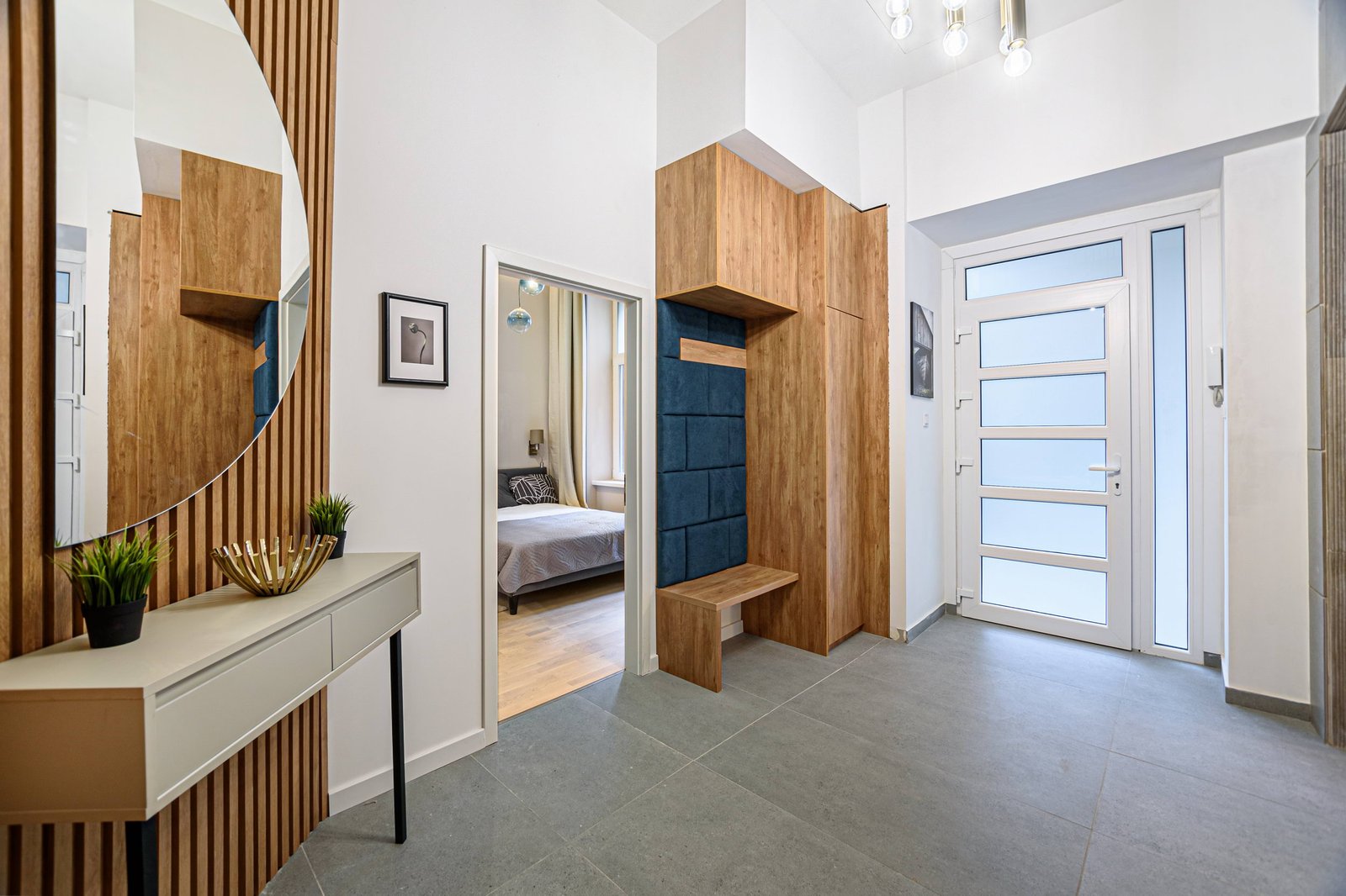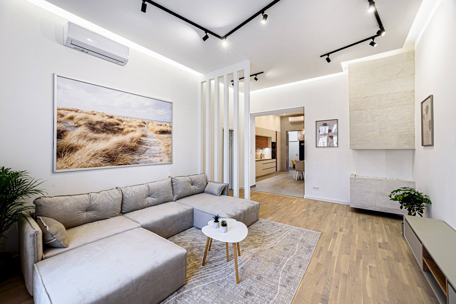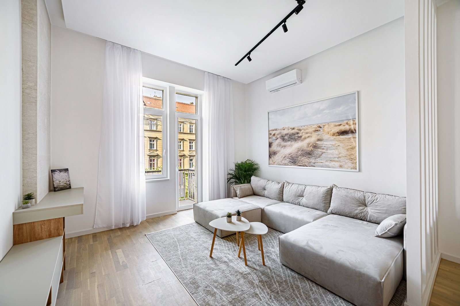 The apartment includes a fully equipped kitchen with an oven, a living area filled with natural light, and a bathtub in the main bathroom for relaxing after a long day. Air conditioning ensures comfort throughout the year, while monthly utilities are billed based on actual consumption, giving tenants flexibility and cost control. The ground-floor location provides easy access without stairs, adding convenience for daily life.