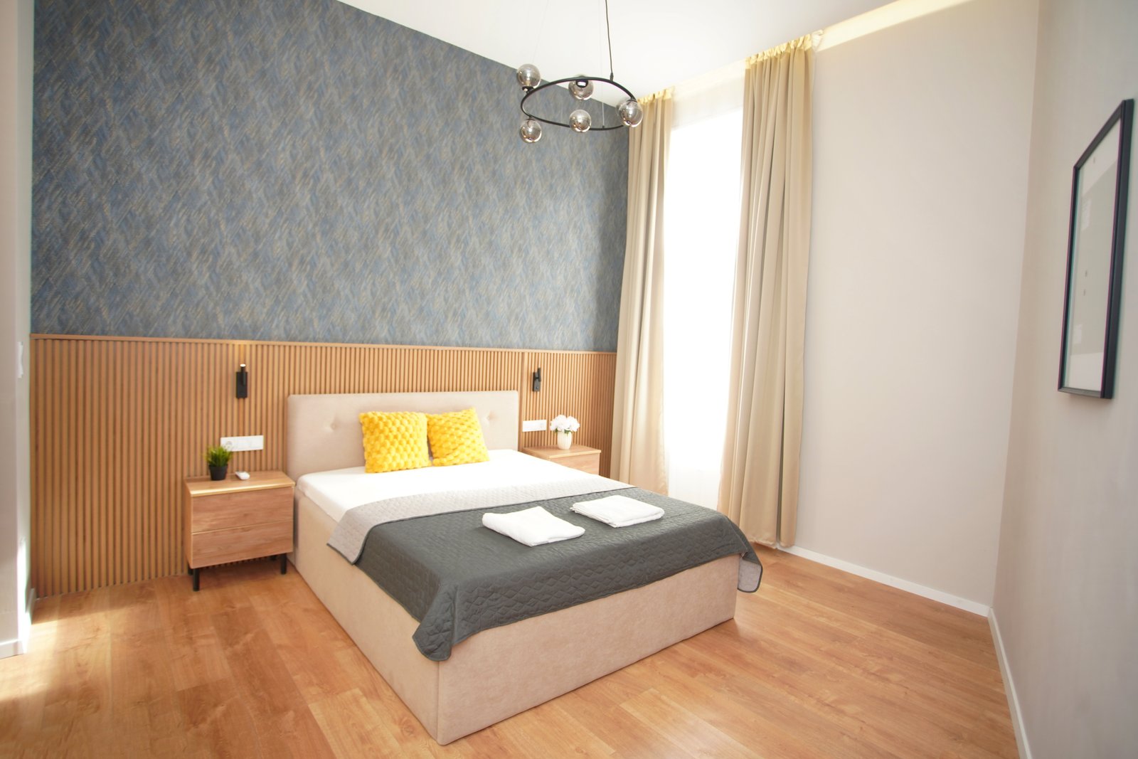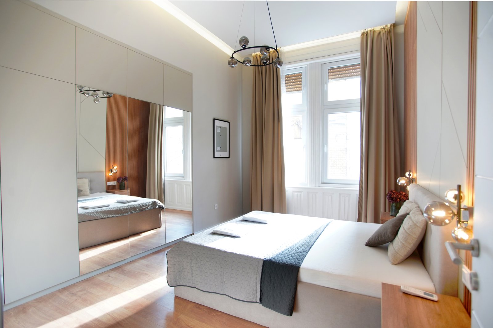 This spacious, beautifully designed 2-bedroom apartment sits in the heart of District 7, one of the city’s most walkable and exciting neighborhoods. Located on the first floor of a classic building overlooking Klauzál tér, this fully furnished home combines old-town Budapest character with modern amenities — making it ideal for professionals, couples, or students looking for stylish downtown living.
