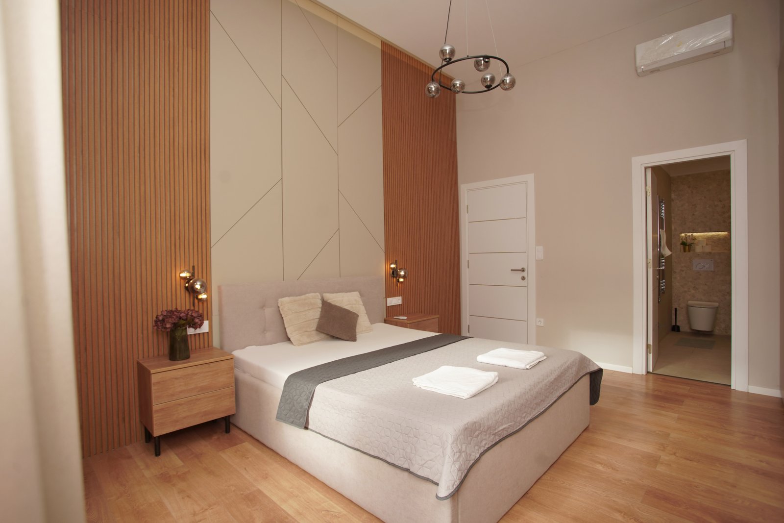 - High ceilings and elegant touches throughout the apartment