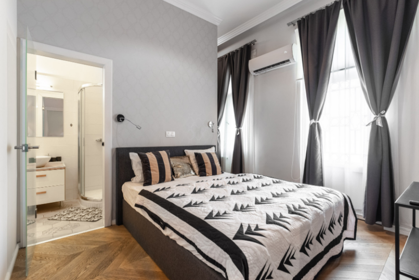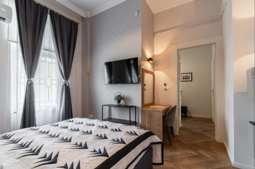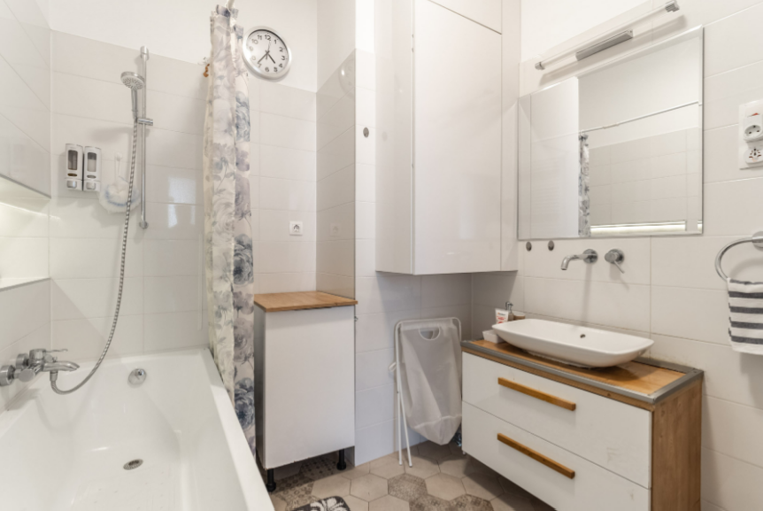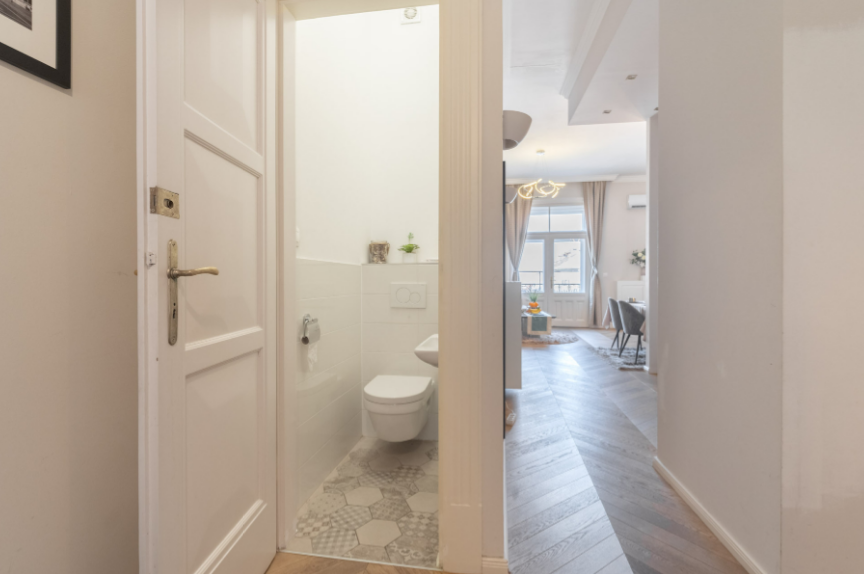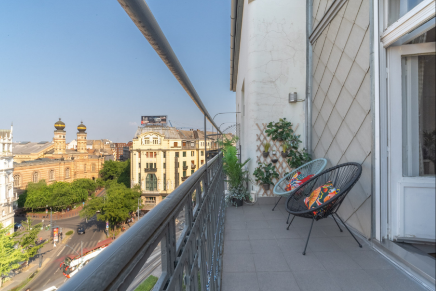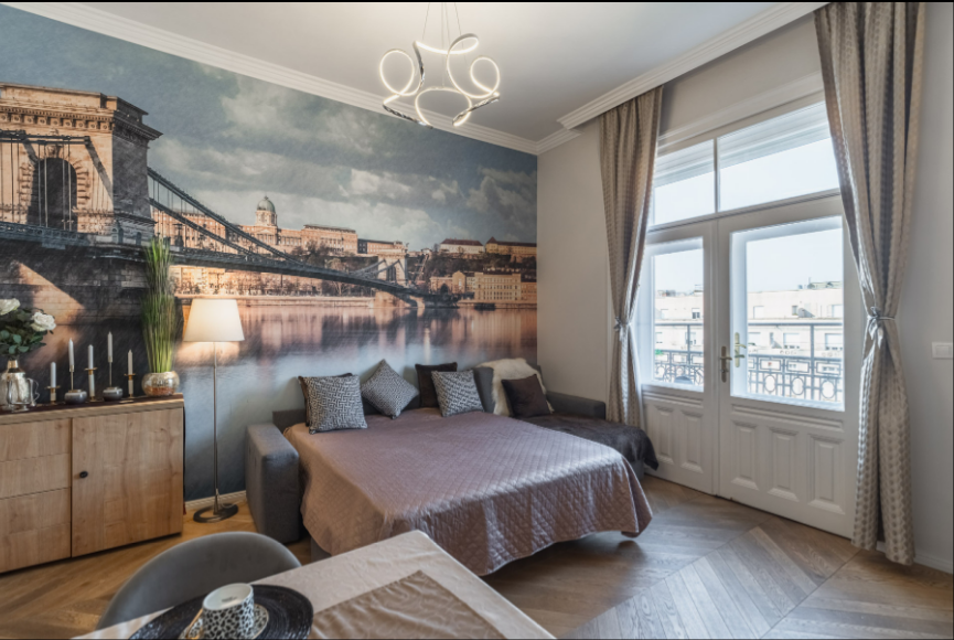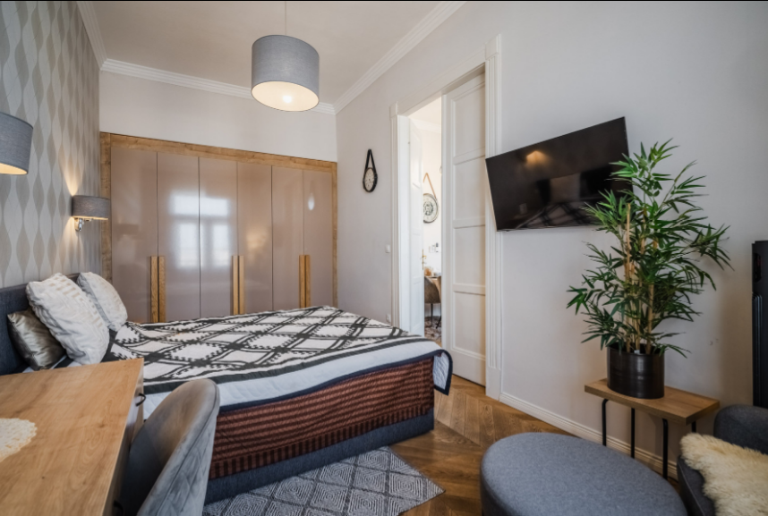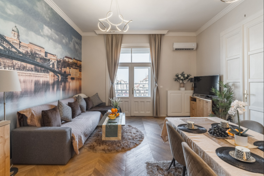 This apartment for rent in Budapest blends modern design with historic surroundings — perfect for those who want convenience, space, and style right in the city center.